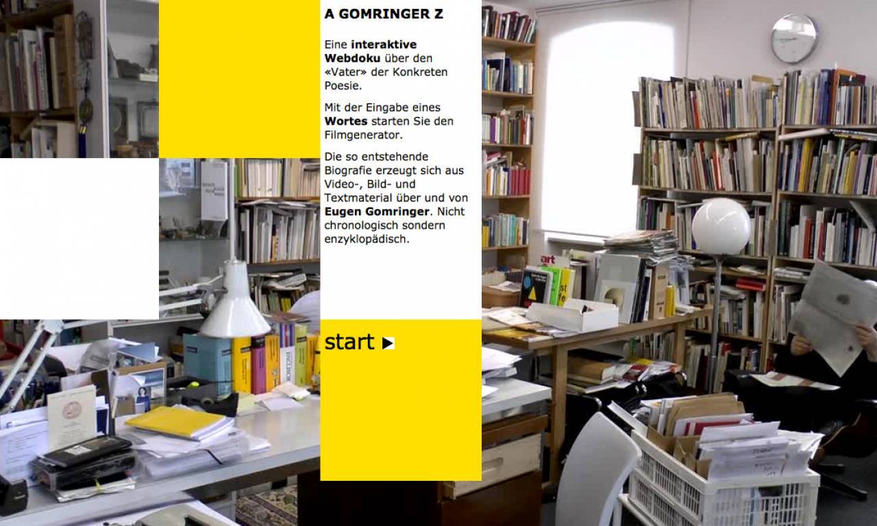Interaktive Webdoku über den Vater der Konkreten Poesie: Eugen Gomringer. Gefördert von der MFG Filmförderung und der Oberfrankenstiftung.