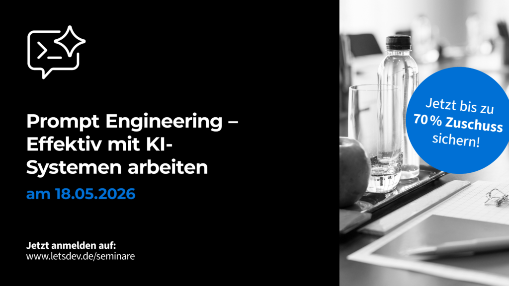Mehr Informationen und Anmeldung unter: https://letsdev.de/seminare/prompt-engineering