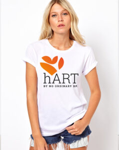 The pink color in the background and the blue for the brand name is a poppy and fresh combination and fits the personality of our client very well.