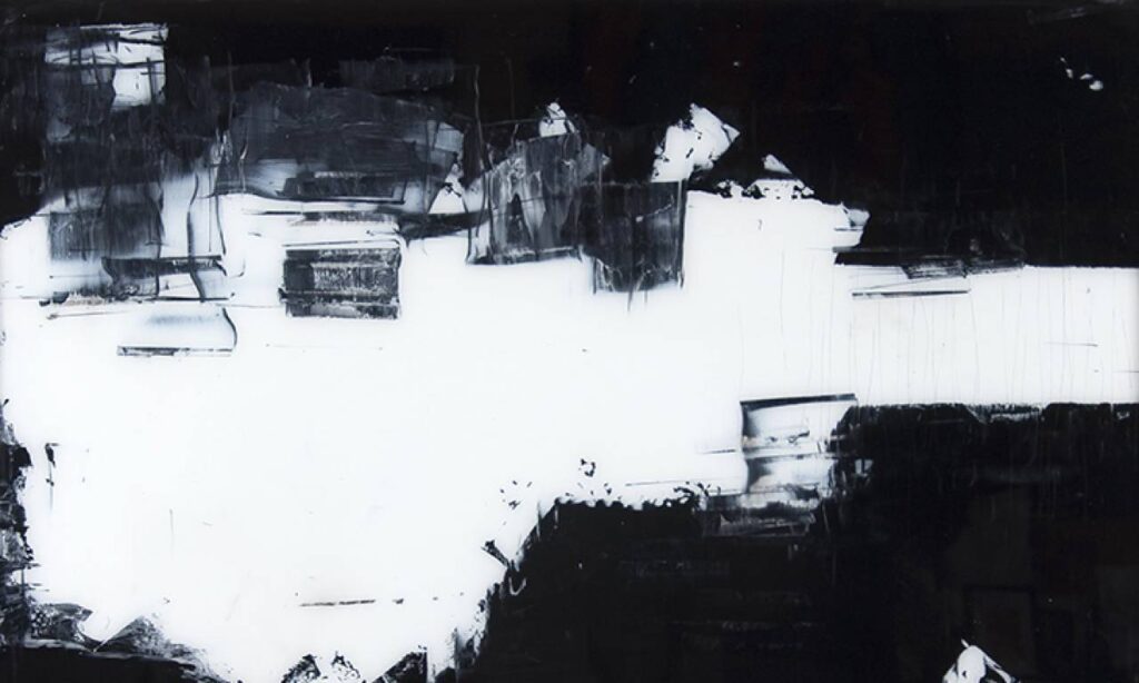 Dieter Franke lotet auf seinem Weg der Bildfindung vielmehr Wechselbeziehungen aus – seine Werke navigieren zwischen Planung und Zufall, zwischen überlegter Aktion und intuitiver Reaktion. Sie spielen mit den Wirkungen der Fläche und der Tektonik des Raums, mit Monochromie und Farbe, mit transparenter Leuchtkraft und mattem Dunkel, mit der Inversion von Positiv und Negativ, mit Tiefenstruktur und Glätte des Materials.