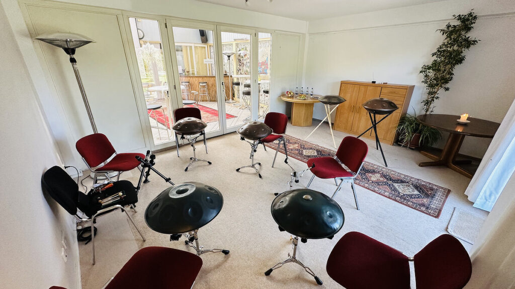 In entspannter und idyllischer Atmosphäre steigst Du spielerisch und umfassend in Kleingruppen in das Handpanspiel ein. Auch werden Dir alle brennenden Fragen zum Handpan beantwortet.