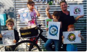 * Kunstbike, erstes upcycling Bike seiner ART in Karlsruhe und Deutschland. Zum bemalen von A4 großen Bildern mit Passepartout Rahmen oder Einkaufstaschen und Baumwollrucksäcke mit Ihrem Logo.