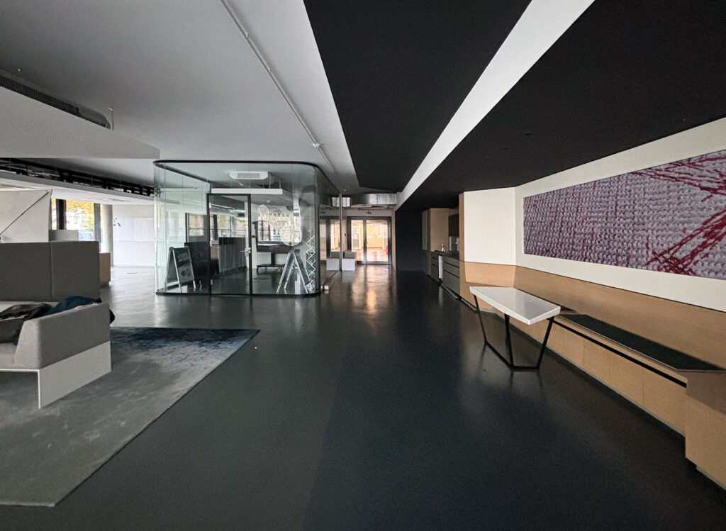Die zu vermietende Fläche befindet sich in Erdgeschosslage und umfasst insgesamt ca. 410 m². Die großzügigen und lichtdurchfluteten Räume bieten vielfältige Nutzungsmöglichkeiten von klassischem Büroarbeiten bis zur effektvollen Produktpräsentation. Ein abgetrenntes Raummodul kann z.B. für Besprechungen