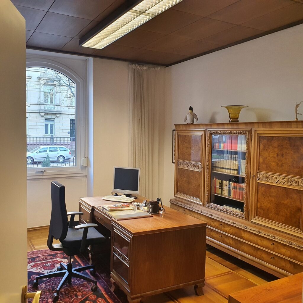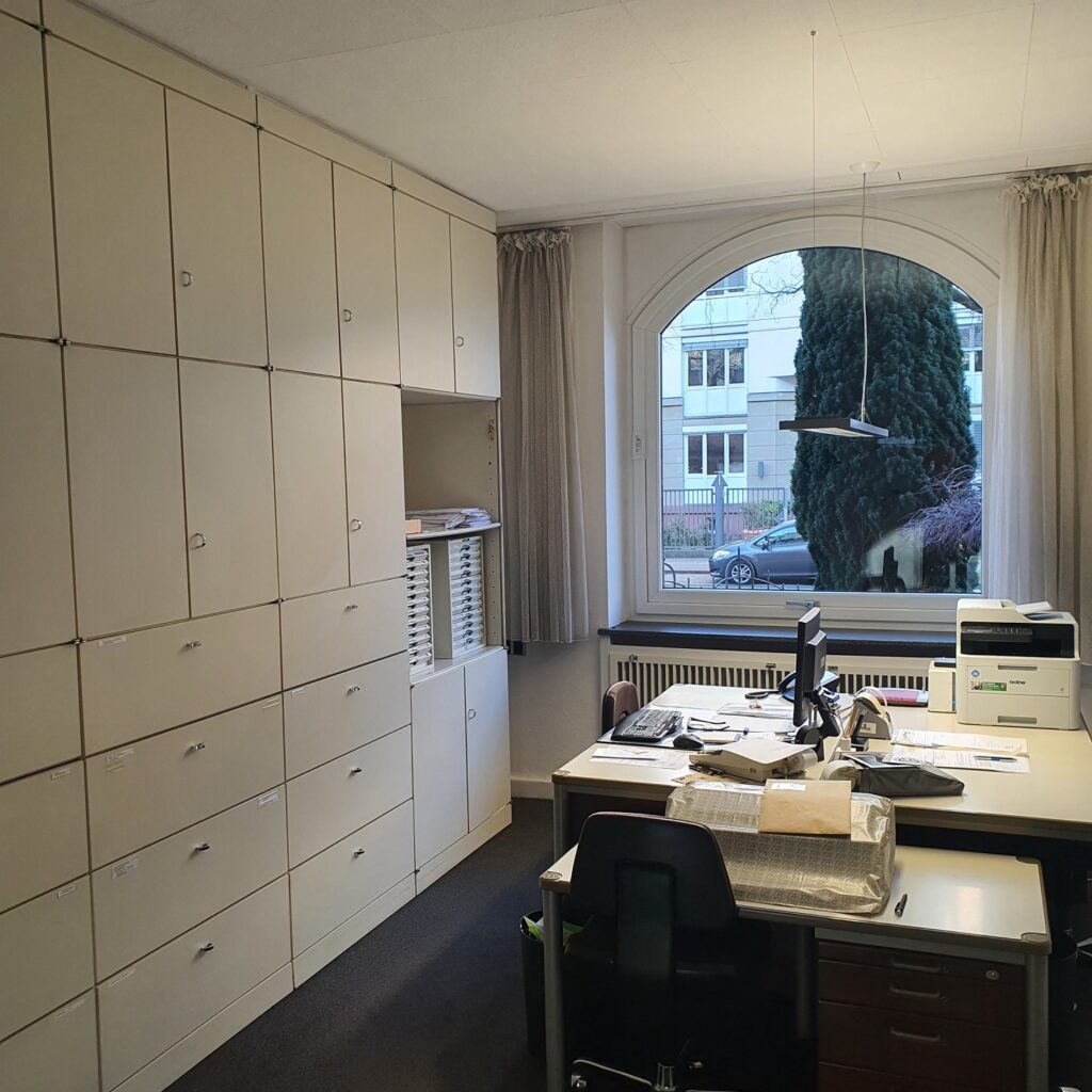 Ca. 160qm im Erdgeschoß eines 1880 erbauten MFH, 6 Räume, teilweise Parkettböden, teilweise Teppichböden, 2 separate WC-Einheiten für Damen und Herren, Einbauküche mit Erker, große Fenster mit Rollläden, großer Kellerabstellraum, Einbauschränke, abgehängte Decken, Beleuchtung vorhanden, Einrichtung kann teilweise gerne erworben werden, frei nach Absprache, 3 Parkplätze im Hofbereich.