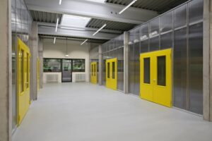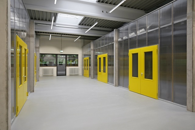 LinkMit dem Umbau der ehemaligen Großmarkthalle wurde in der früheren Verkaufshalle ein Raum-in-Raum-Konzept umgesetzt, mit dem 12 abgeschlossene Arbeitseinheiten (Modulateliers) entstanden sind. Das Modulatelier 04 besteht aus einem ebenerdigen Werkstattarbeitsraum (ca. 27 m²), der über einen Wasseranschluss (Ausgussbecken) verfügt, sowie Anschlüsse für Strom/Starkstrom und Telekommunikation besitzt. Über eine Treppe gelangt man in zweiter Ebene auf eine Lagerfläche (ca. 24 m²). Die Flächen in der Halle können gemeinschaftlich genutzt werden.