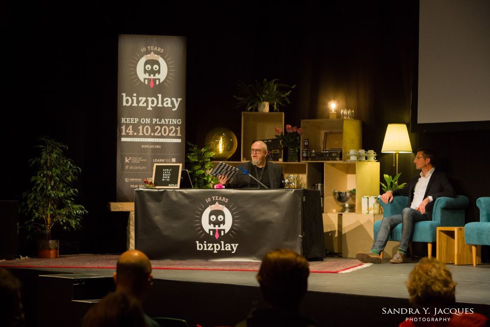Highlight war die Early Late Night Show unter dem Motto: Keep On Playing: 10 Jahre bizplay. Prof. Dr. Steffen P. Walz, diconium (DE) & Swinburne University of Technology (AU), führte die Gäste und Zuschauer*innen durch den Abend und diskutierte mit ihnen über Lehren aus der Vergangenheit, den Status Quo von Spiel, Gamification und kreativen Medien und unterhielt sich über wahrscheinliche und unwahrscheinliche zukünftige Zustände von Spiel und Gamification.