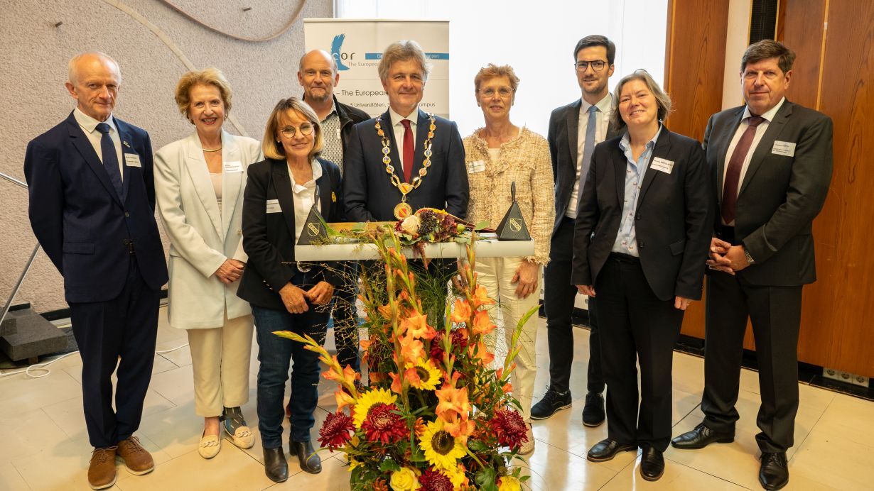 Die Intensivierung der Zusammenarbeit von Hochschulen und Städten am Oberrhein stand im Blickpunkt des zweiten „Eucor-Städte-Treffens“ gestern Nachmittag (12. Oktober 2023) in Karlsruhe. Zu der Zusammenkunft von Spitzenvertreterinnen und -vertretern des trinationalen Eucor-Verbunds und seiner Sitzstädte hatten das Karlsruher Institut für Technologie (KIT) und die Stadt Karlsruhe eingeladen. Gemeinsames Ziel ist es, die Region insbesondere als Innovationsstandort weiter zu stärken.
