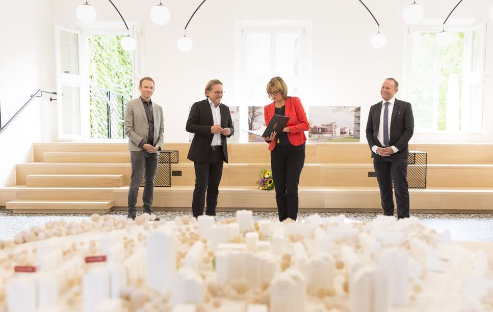 2017 gewann Falk Schneemann (links im Bild) den Wettbewerb OPEN CALL. Seitdem setzt sich der Karlsruher Architekt für die Realisierung seinenr Idee, Garagen zu Wohnungen umzufunktionieren und damit die bauliche und soziale Quartiersentwicklung in Karlsruhe voranzubringen, ein. Gemeinsam mit der Volkswohnung sowie dem Land Baden-Württemberg als Kooperationspartner "aktiviert Schneemann ungenutzte Potentiale und schafft zügig bezahlbaren Wohnraum". Nun wurde die Idee des Architekten mit einem Förderbescheid des Landes über 700 000 € belohnt. Die Finalisierung des Projekts rückt damit in greifbare Nähe.