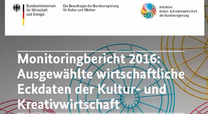 Das Bundesministerium für Wirtschaft und Energie (BMWi) hat im November 2016 in seinem jährlichen Monitoringbericht ausgewählte wirtschaftliche Eckdaten der Kultur- und Kreativwirtschaft vorgelegt. Der Bericht untersucht die Bedeutung der Kultur- und Kreativwirtschaft für die Gesamtwirtschaft in Deutschland und stellt die Entwicklung wirtschaftlicher Kennzahlen für den Zeitraum von 2010 bis 2015 dar.
