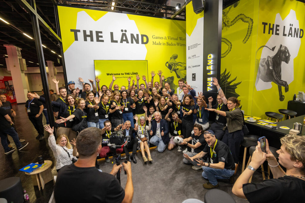 Auch dieses Jahr begrüßte die Gamescom vom 20.08-24.08.2025 wieder zahlreiche Gamer und Spielbegeisterte in Köln. The Länd präsentierte zum zwölften Mal in Folge talentierte Entwickler*innen sowie innovative Games-Studios aus dem Südwesten auf einem Gemeinschaftsstand. Neun Aussteller-Teams und erstmalig vier Studios in der Indie Area Booth stellten dabei die baden-württembergische Games-Branche vor.Der Stand wurde organisiert von der MFG Baden-Württemberg und Baden-Württemberg International, der Stadt Karlsruhe mit dem K³-Büro, der UNESCO City of Media Arts sowie dem ZKM Zentrum für Kunst und Medien und gefördert durch das Ministerium für Wirtschaft, Arbeit und Tourismus Baden-Württemberg.Außer Entertainment-Spielen wurden auch immersive Games für Virtual Reality-Anwendungen ausgestellt, die unter anderem auch im Bereich der Aus- und Weiterbildung eingesetzt werden. Fotos gibt es hier>>