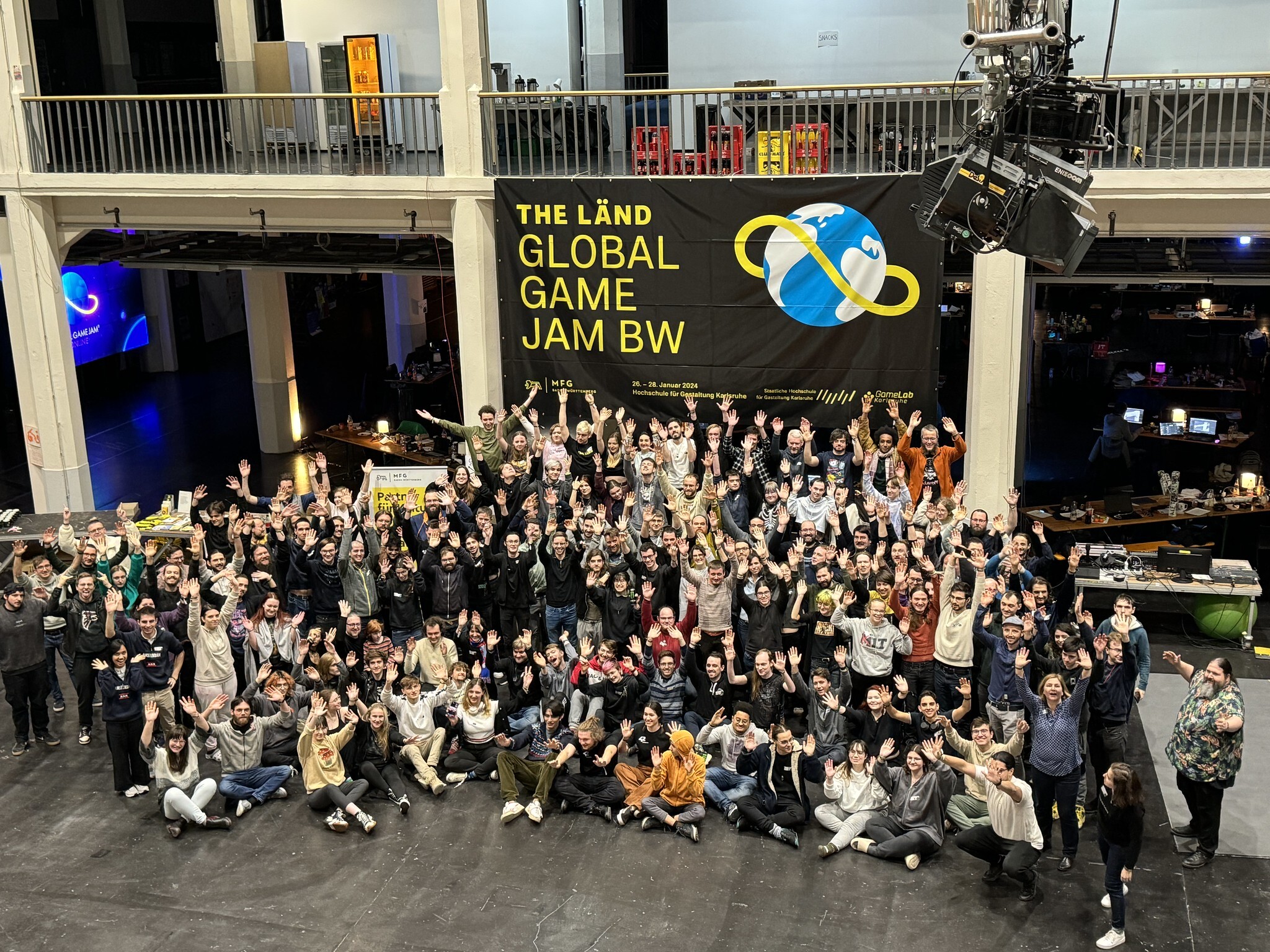 Diese besondere Atmosphäre herrschte beim THE LÄND Global Games Jam Baden-Württemberg. Ein Programmierevent, bei dem die Teilnehmer*innen in 48 Stunden Spiele entwickelten. Die Veranstaltung in Karlsruhe war Teil eines weltweiten Events. Von den knapp 800 Sites gehörte die THE LÄND GGGJ BW zu den 20 größten weltweit. Überall auf der Welt programmierten zeitgleich Spiele-Interessierte Games zum vorgegebenen Thema – dieses Jahr “Make me laugh”.