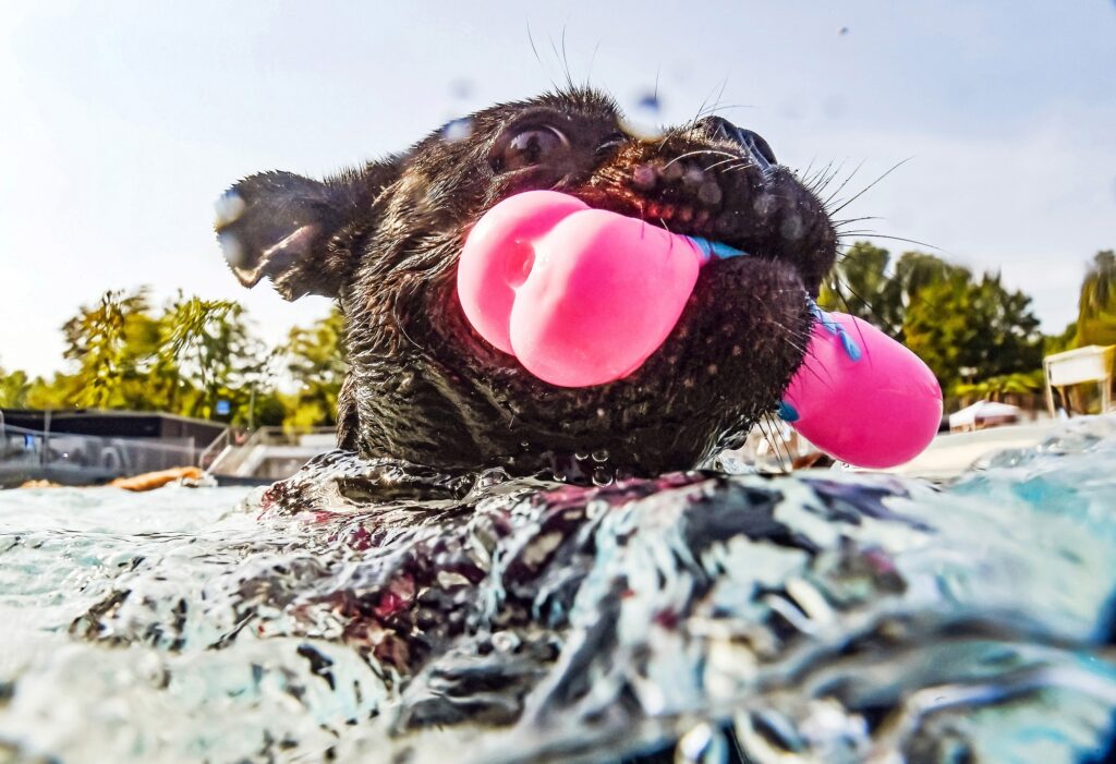 Uli Deck siegte in zwei Kategorien: Features und Symbolbild. Drei Aufnahmen pro Kategorie durften die Fotografen bei einreichen. Bei den Features setzte sich der Karlsruher mit einem Bild vom Hundeschwimmen im Rheinstrandbad Rappenwört durch. Unter dem Motto "Für einen Tag ein SeeHund sein" dürfen sich die Vierbeiner darin vergnügen.