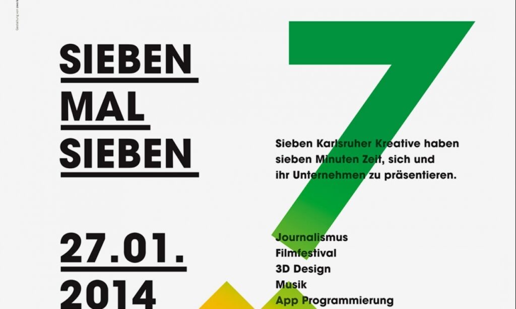 Eine Veranstaltungsreihe, bei welcher der Name Programm ist. Sieben Karlsruher Kreative haben je sieben Minuten Zeit, sich und ihre Arbeit zu präsentieren.