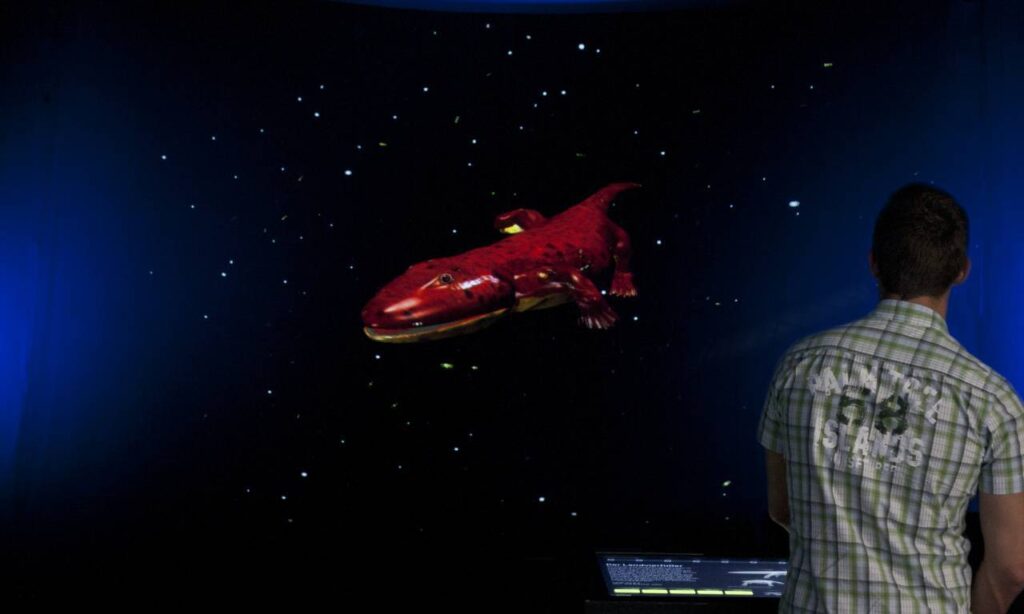 Die neuartige multimediale Präsentation „Dynamik des Lebens“ lässt die Evolution als Grundlage für die Vielfalt des Lebens auf anschauliche Weise nacherleben. Die interaktive Installation besteht aus einer virtuellen 3D-Umgebung, die es ermöglicht die Entwicklung des Lebens in Bewegung zu betrachten. Die Veränderung der Lebewesen kann in Echtzeit verfolgt werden. Die Objekte lassen sich jederzeit frei drehen und von allen Seiten betrachten. Das Projekt „Dynamik des Lebens“ wurde in Zusammenarbeit vom Staatlichen Museum für Naturkunde Karlsruhe, PXNG.LI und Contexts Relationen GmbH umgesetzt und von der Landesstiftung Baden-Württemberg finanziell unterstützt.