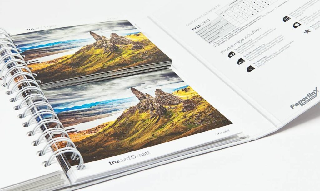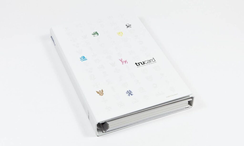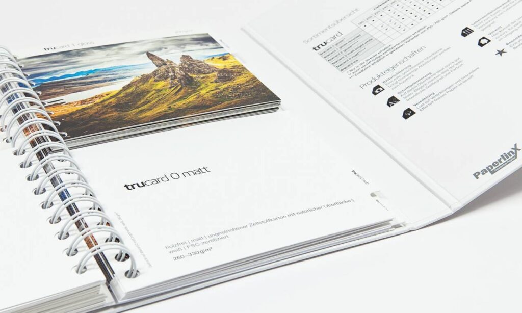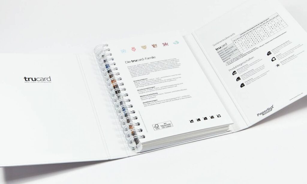 In diesem hochwertigen Musterbuch werden die Kartone der Marke Trucard zum Anfassen und direktem Vergleichen vorgestellt – praktisch umgesetzt in einem stabilen, kompakten Ringbuch mit geteilten Druckmustern.