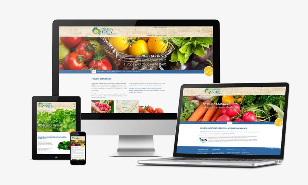 Frisch von Hier! Mit dem neuen Internetauftritt des Familienunternehmens Gemüsebau Frey präsentiert sich das Unternehmen von seiner besten Seite: frisch, anschaulich und vielfältig. Optimiert für alle Endgeräte wie Tablets, Smartphones und Desktop-PCs sind die Internetseiten auch suchmaschinenfreundlich für Google und Co. gestaltet.