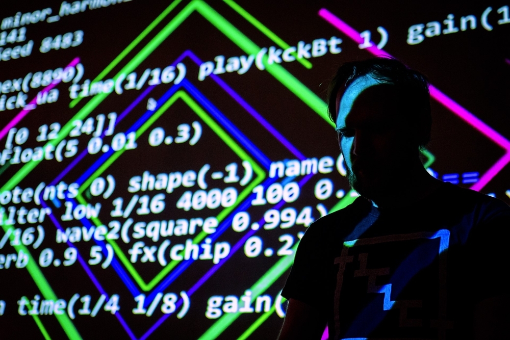 Live-Coding als Aufführungspraxis von Computermusik und algorithmischer Tanzmusik hat in Karlsruhe bereits seit vielen Jahren Tradition – ausgehend vom Institut für Musikinformatik und Musikwissenschaft an der HfM Karlsruhe, dem das international renommierte Live-Coding Ensemble Benoit and the Mandelbrots entstammte und welches 2013 das internationale live.code.festival organisiert hat, über Veranstaltungen, Workshops und Residencies am ZKM, der 2022 gegründeten Community TOPLAP Karlsruhe, die die Karlsruher Live-Coding-Szene virtuell, in der Stadt und über die Stadtgrenzen hinaus vertritt, sowie die seit 2015 regelmäßig im jubez Karlsruhe (stja) stattfindenden Algoraves.