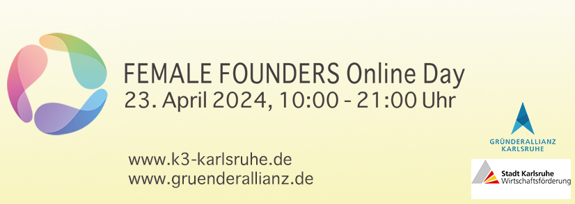 Übergeordnete Ziele der sozialen und ökologischen Nachhaltigkeit sind oft Motivatoren für Frauen. Um eine offene und gleichberechtigte Gesellschaft zu fördern und Gründerinnen einen erleichterten Einstieg in die Selbstständigkeit zu ermöglichen, haben die Gründerallianz Karlsruhe sowie die Wirtschaftsförderung Karlsruhe den Female Founders Online Day ins Leben gerufen, der am 23. April 2024 stattfinden wird.