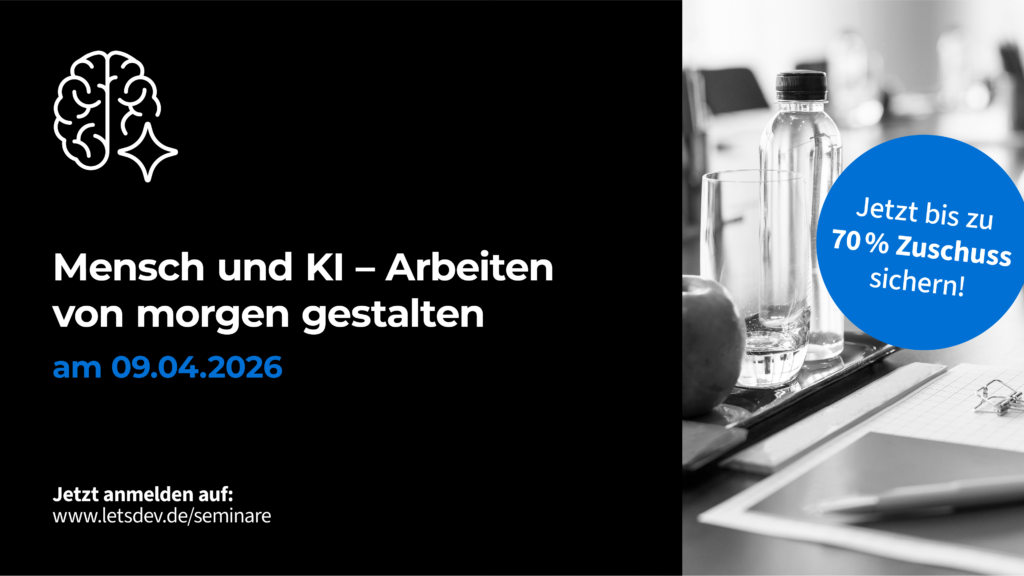 Seminare und Schulungsförderung - von 30 % bis zu 70% Zuschuss. Mehr Infos unter: https://letsdev.de/seminar-und-schulungsfoerderung