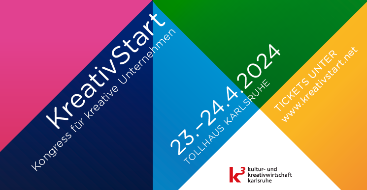 Einmal jährlich veranstaltet das K³-Büro den Kongress KreativStart. Der Kongress richtet sich nicht nur an Gründer*innen, an StartUps und an kreative Unternehmer*innen, sondern auch an Interessierte aus Medien, Politik, Kultur, Verwaltung und Wissenschaft. Dabei geht es jedes Jahr um aktuelle Themen im Bereich der Kultur- und Kreativwirtschaft und um all das, was wichtig ist, um mit den eigenen Geschäftsideen auf dem Markt erfolgreich durchzustarten. KreativStart ist auch ein guter Platz, um Netzwerke zu erweitern und sich aus erster Hand über aktuelle Themen und Trends im Kreativbereich zu informieren. Der Kongress wurde in den letzten Jahren vom Ministerium für Wirtschaft, Arbeit und Wohnungsbau Baden-Württemberg unterstützt. Als weitere Kooperationspartner*innen konnten die MFG Medien- und Filmgesellschaft Baden-Württemberg und das Kompetenzzentrum Kultur- und Kreativwirtschaft des Bundes gewonnen werden. Mit dabei waren auch lokale Netzwerkpartner wie die Karlsruher Gründerallianz.