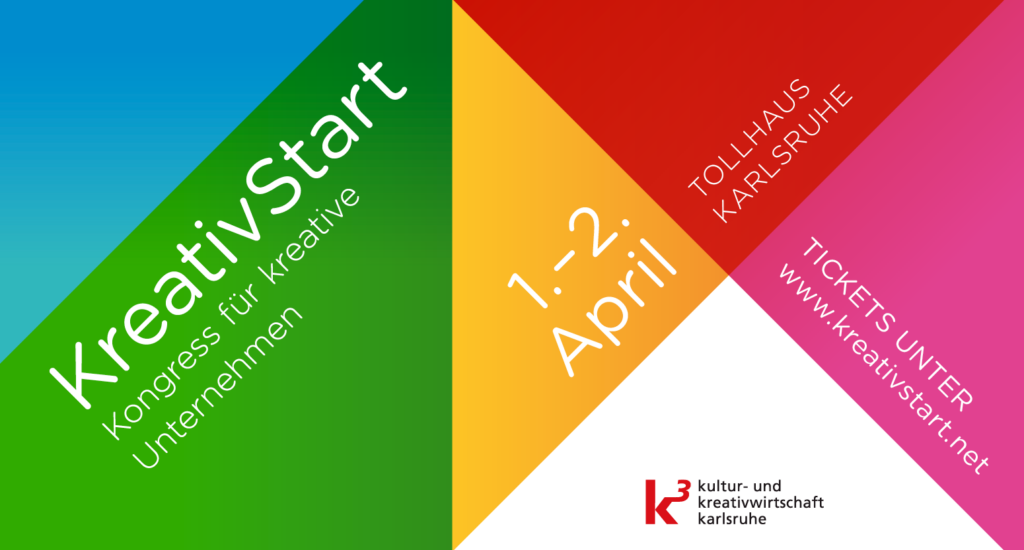 Einmal jährlich veranstaltet das K³-Büro den Kongress KreativStart. Der Kongress richtet sich nicht nur an Gründer*innen, an StartUps und an kreative Unternehmer*innen, sondern auch an Interessierte aus Medien, Politik, Kultur, Verwaltung und Wissenschaft. Dabei geht es jedes Jahr um aktuelle Themen im Bereich der Kultur- und Kreativwirtschaft und um all das, was wichtig ist, um mit den eigenen Geschäftsideen auf dem Markt erfolgreich durchzustarten. KreativStart ist auch ein guter Platz, um Netzwerke zu erweitern und sich aus erster Hand über aktuelle Themen und Trends im Kreativbereich zu informieren. Der Kongress wurde in den letzten Jahren vom Ministerium für Wirtschaft, Arbeit und Wohnungsbau Baden-Württemberg unterstützt. Als weitere Kooperationspartner*innen konnten die MFG Medien- und Filmgesellschaft Baden-Württemberg und das Kompetenzzentrum Kultur- und Kreativwirtschaft des Bundes gewonnen werden. Mit dabei waren auch lokale Netzwerkpartner wie die Karlsruher Gründerallianz.